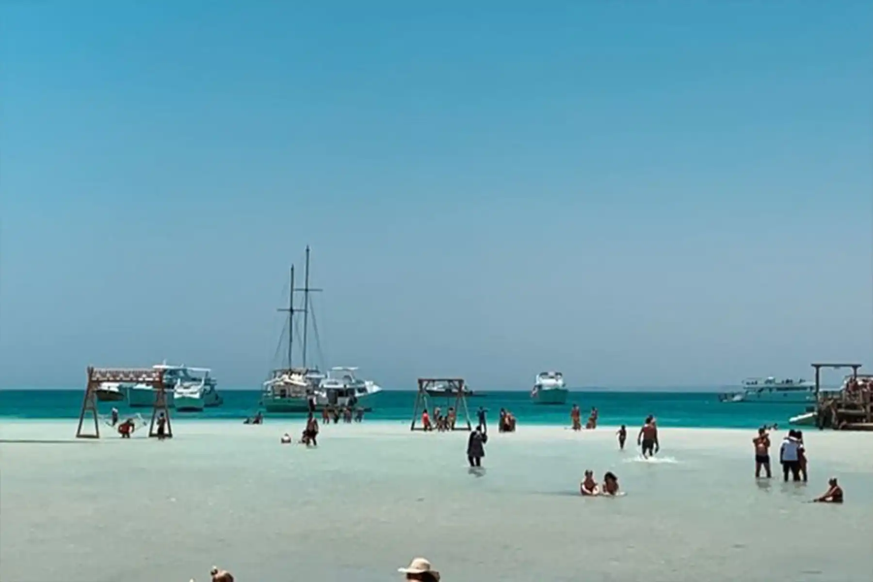 Landing on the island for rest and swimming from the shore
