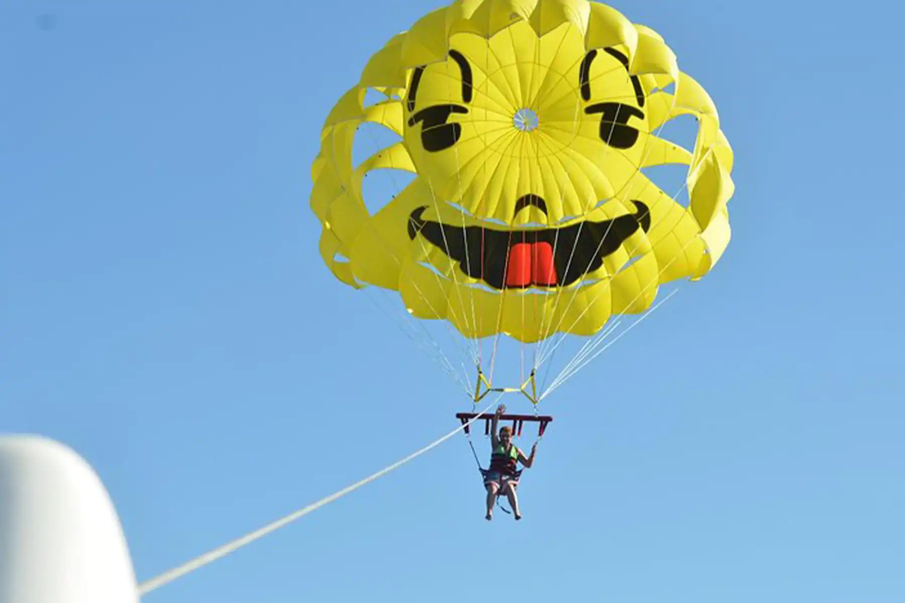 Flight on a parachute behind a boat for about 7-10 minutes